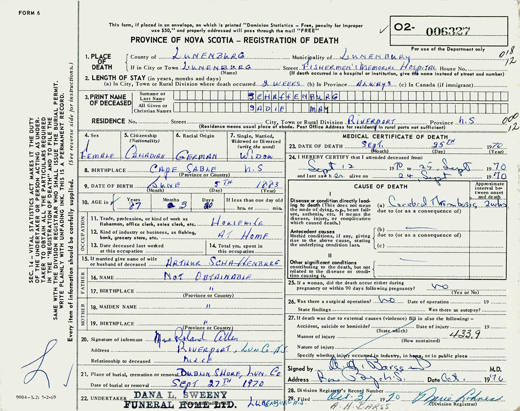 22. Undertaker Dana L. Sweeny Funeral Home Limited, Lunenburg