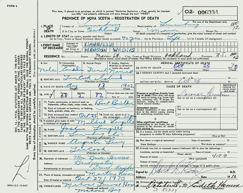 3. PRINT NAME OF DECEASED Langille, Manson Willis