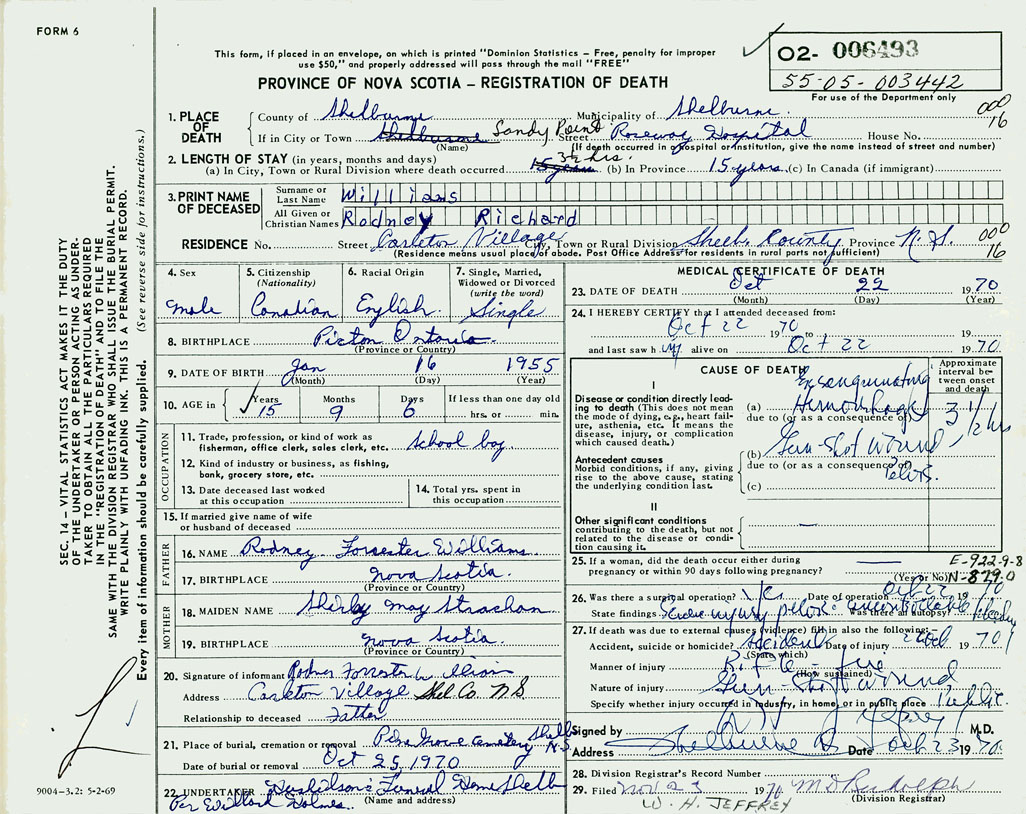 1. PLACE OF DEATH County of Shelburne If in City or Town Sandy Point