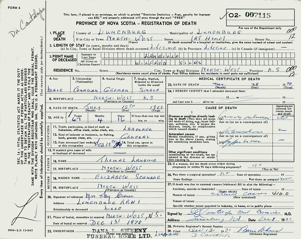 3. PRINT NAME OF DECEASED Langille, Wilfred Silas