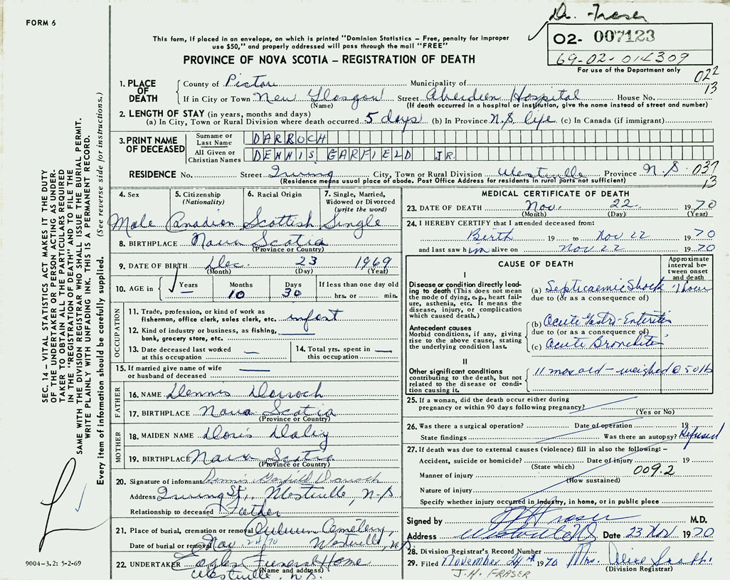 PROVINCE OF NOVA SCOTIA — REGISTRATION OF DEATH