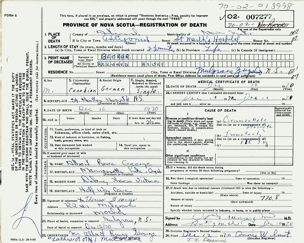 3. PRINT NAME OF DECEASED George, Bernard Henry