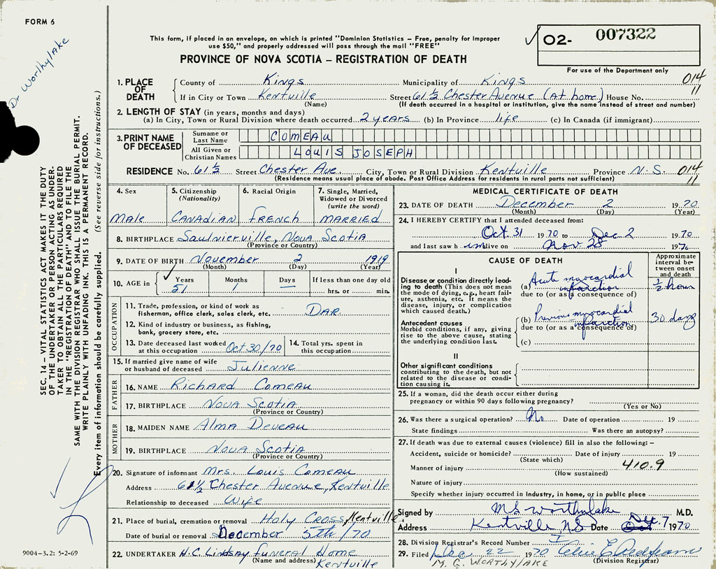 3. PRINT NAME OF DECEASED Comeau, Louis Joseph