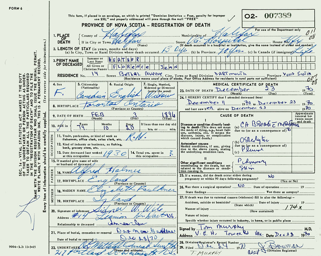 3. PRINT NAME OF DECEASED Heather, Florence Jean