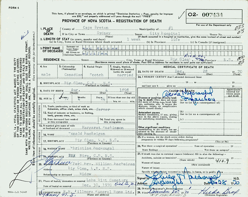 3. PRINT NAME OF DECEASED MacKeigan, William