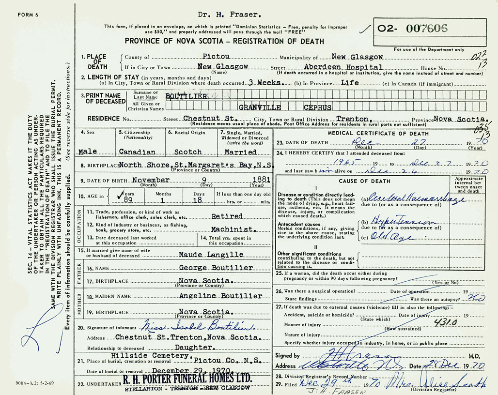 3. PRINT NAME OF DECEASED Boutilier, Granville Cephus
