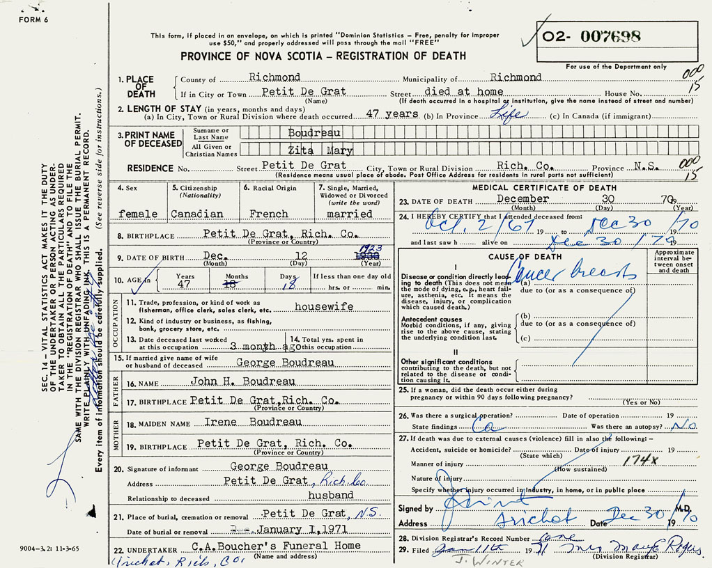 1. PLACE OF DEATH County of Richmond If in City or Town Petit-de-Grat