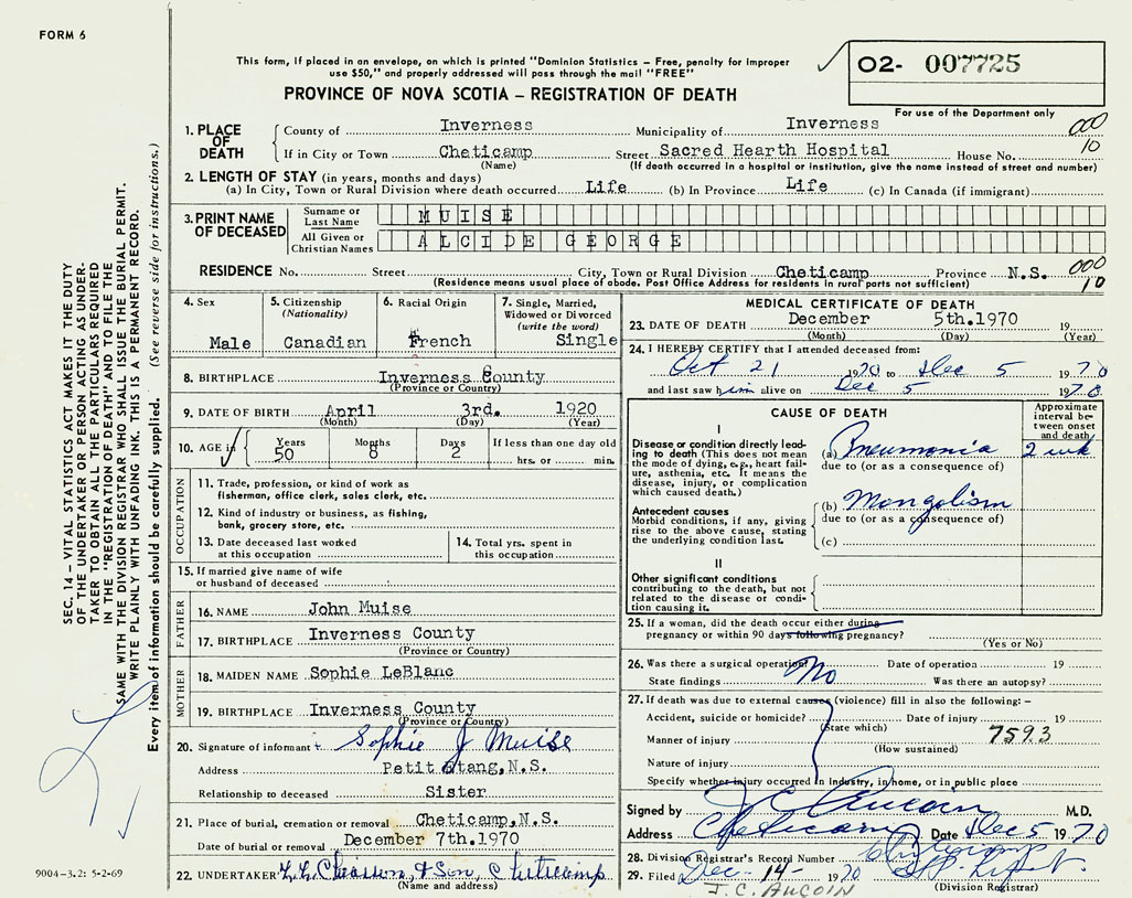 3. PRINT NAME OF DECEASED Muise, Alcide George