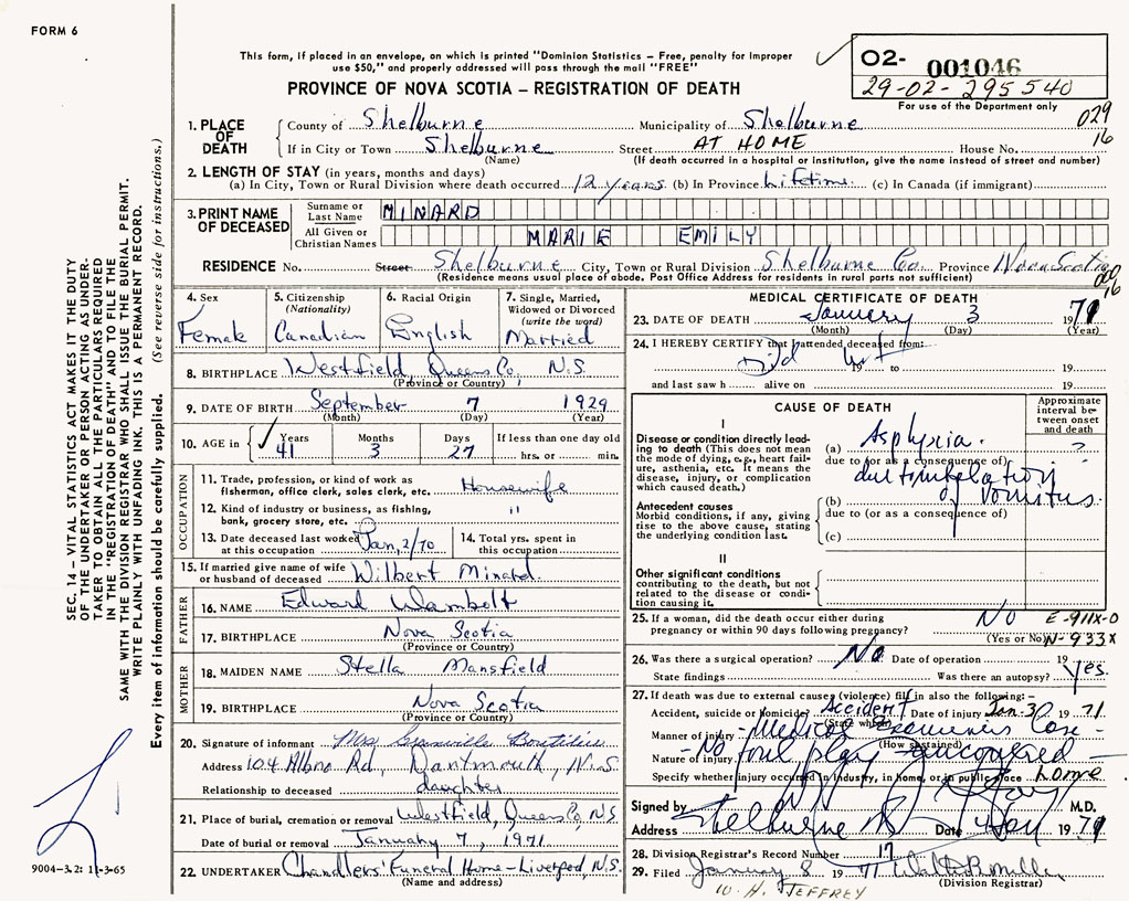 PROVINCE OF NOVA SCOTIA — REGISTRATION OF DEATH