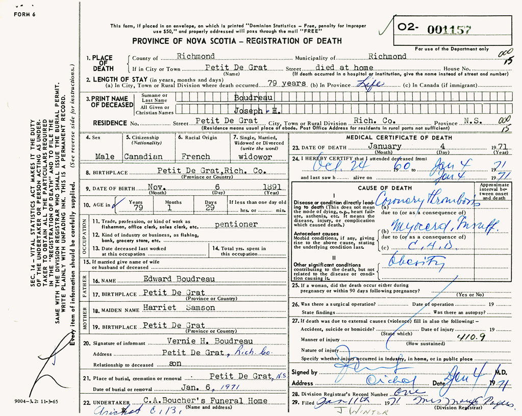 3. PRINT NAME OF DECEASED Boudreau, Joseph H