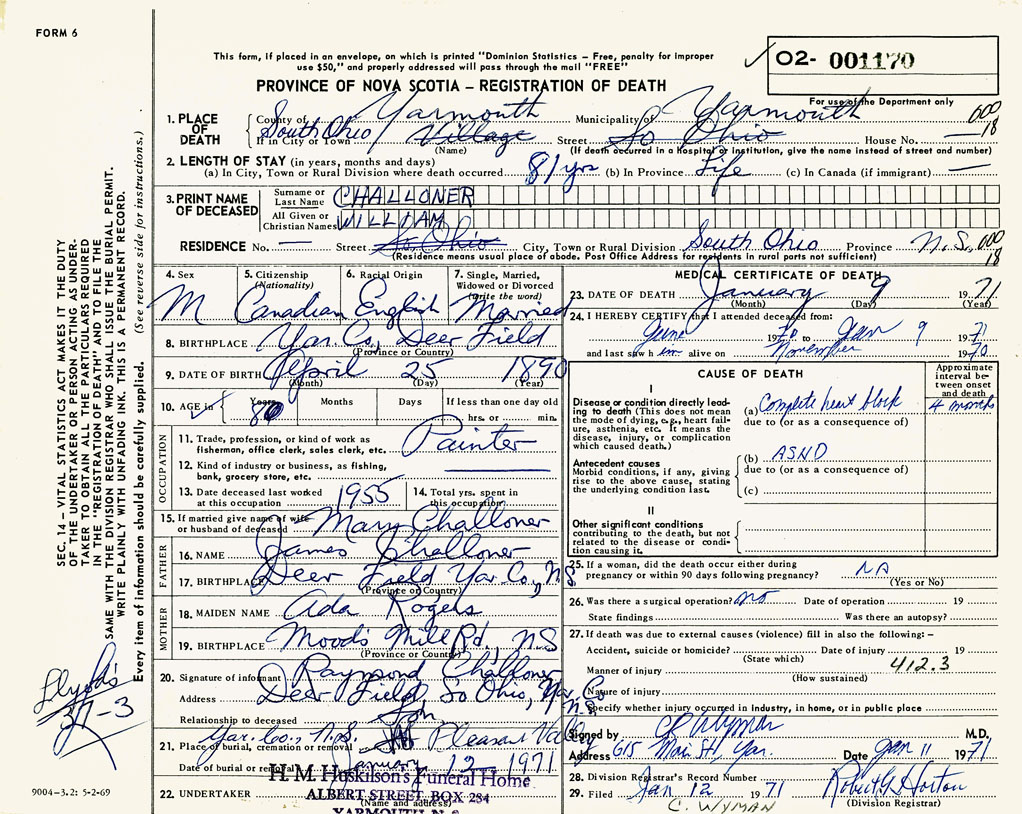 PROVINCE OF NOVA SCOTIA — REGISTRATION OF DEATH