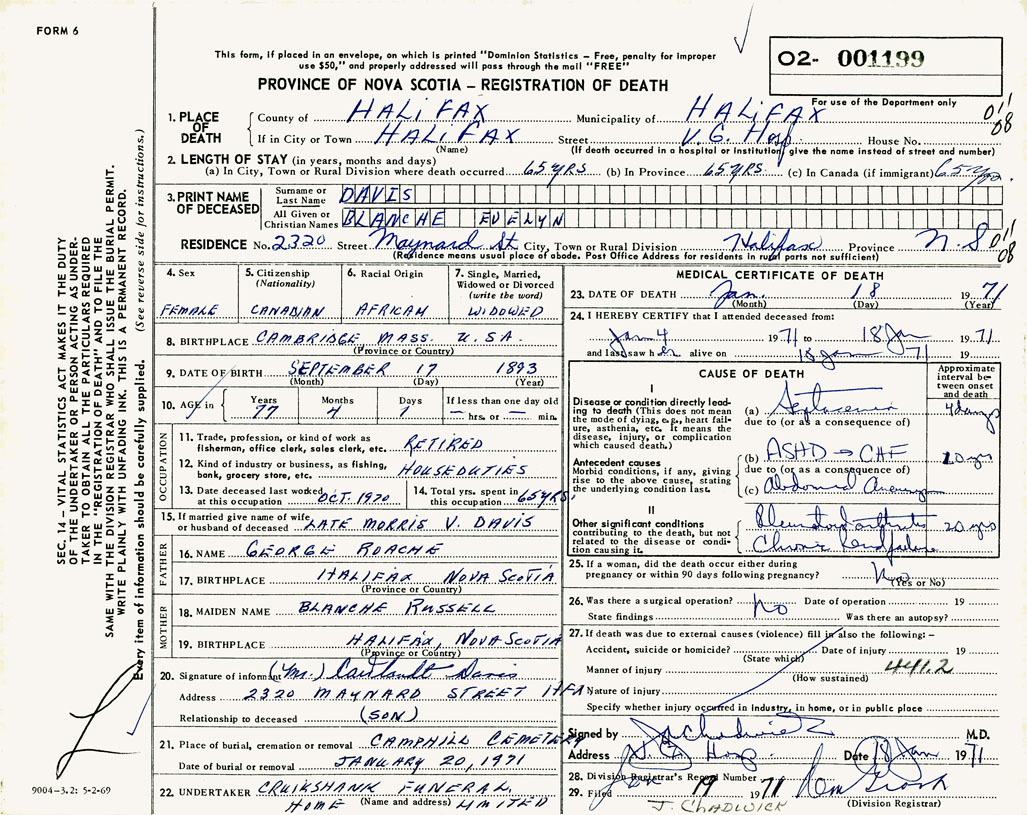 PROVINCE OF NOVA SCOTIA — REGISTRATION OF DEATH