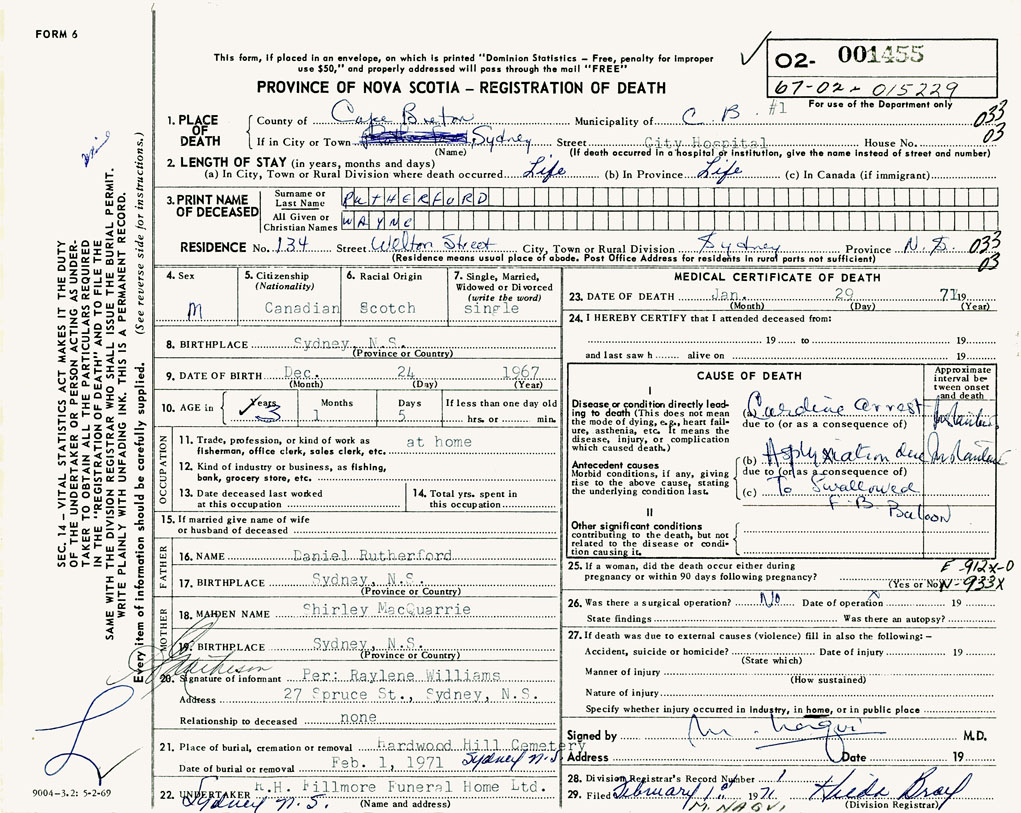 PROVINCE OF NOVA SCOTIA — REGISTRATION OF DEATH