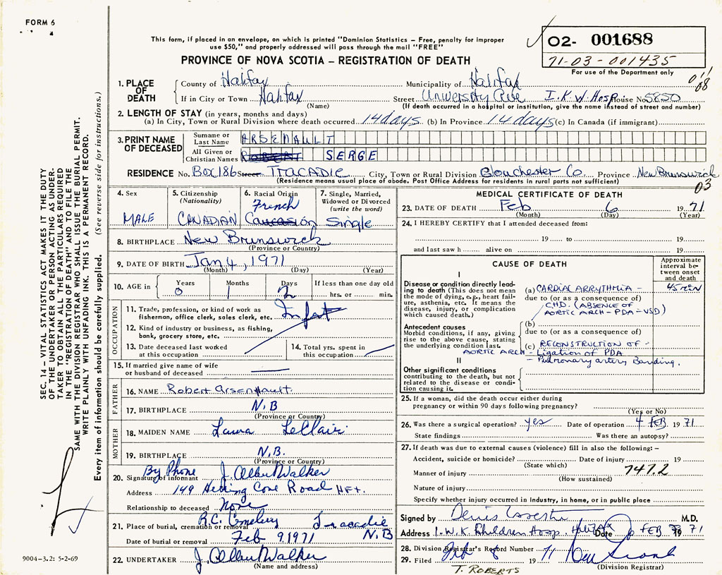 3. PRINT NAME OF DECEASED Arsenault, Serge