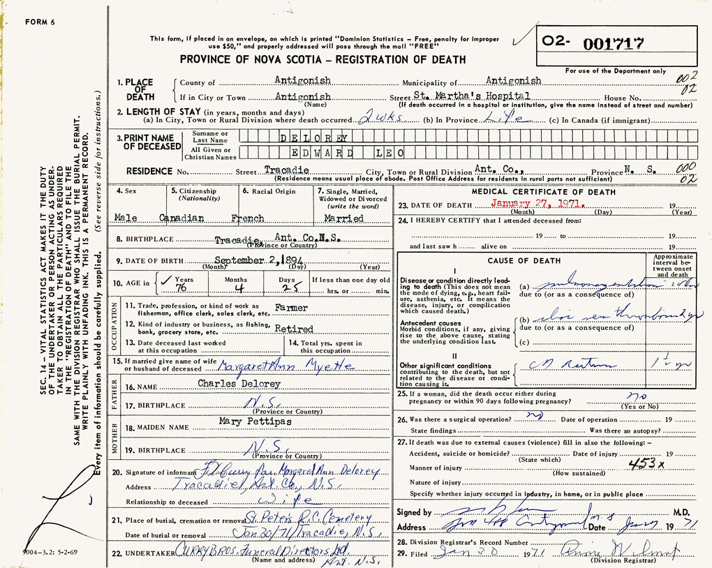 PROVINCE OF NOVA SCOTIA — REGISTRATION OF DEATH