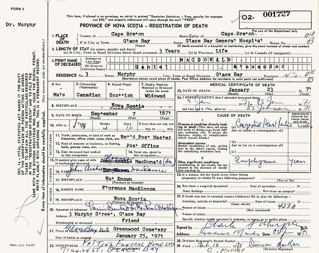 3. PRINT NAME OF DECEASED MacDonald, Daniel Alexander