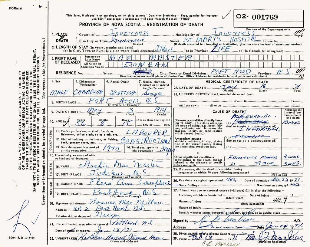 3. PRINT NAME OF DECEASED MacMaster, Duncan