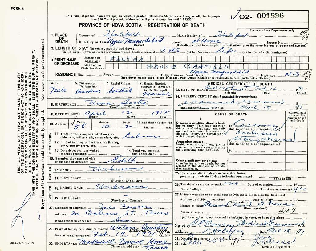 PROVINCE OF NOVA SCOTIA — REGISTRATION OF DEATH