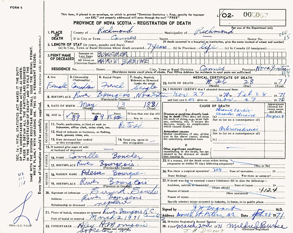 3. PRINT NAME OF DECEASED Boucher, Marie Zabine