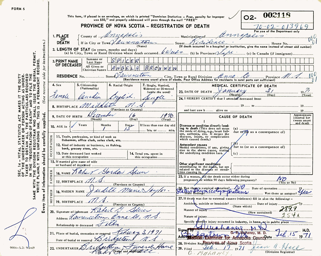 3. PRINT NAME OF DECEASED Spicer, Angela Bronwen