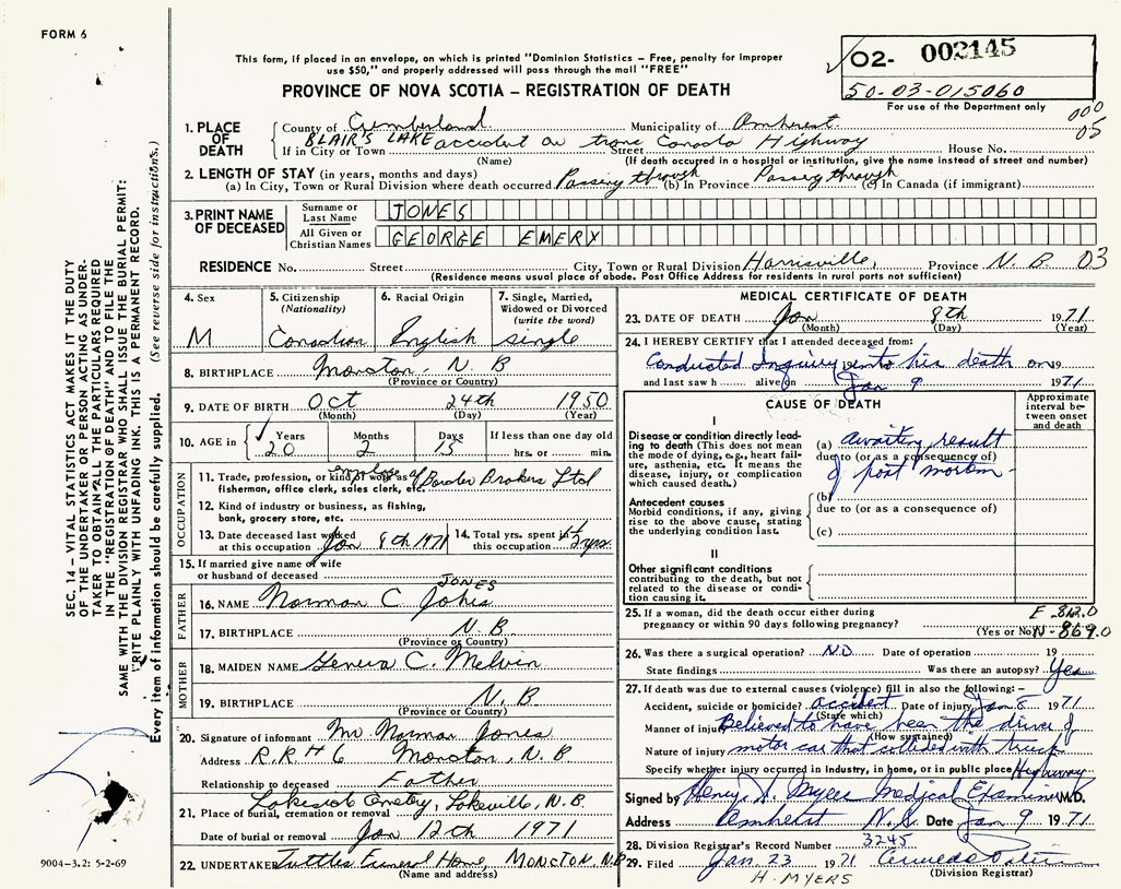 PROVINCE OF NOVA SCOTIA — REGISTRATION OF DEATH