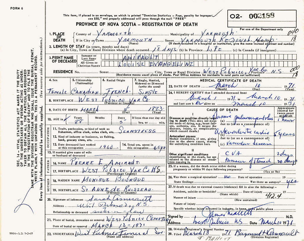 3. PRINT NAME OF DECEASED Amirault, Louise Evangeline