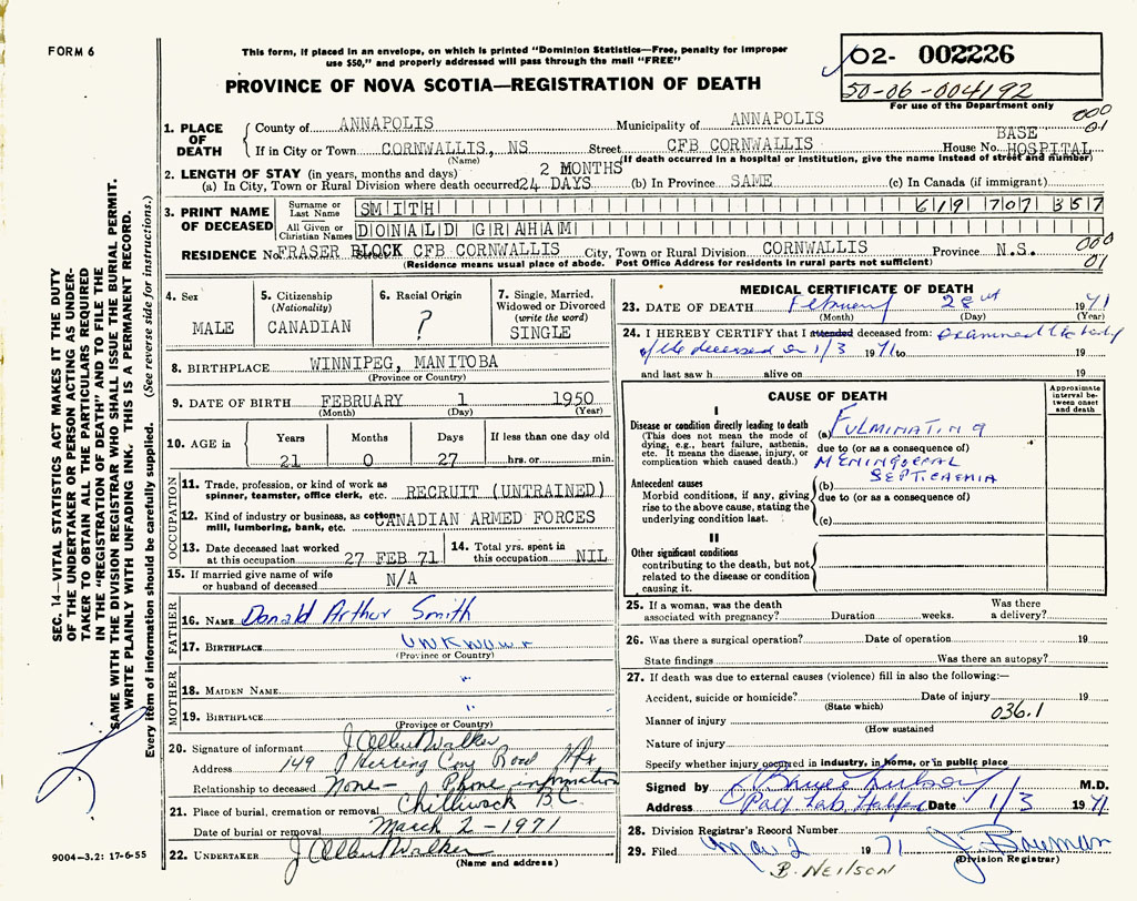 PROVINCE OF NOVA SCOTIA — REGISTRATION OF DEATH