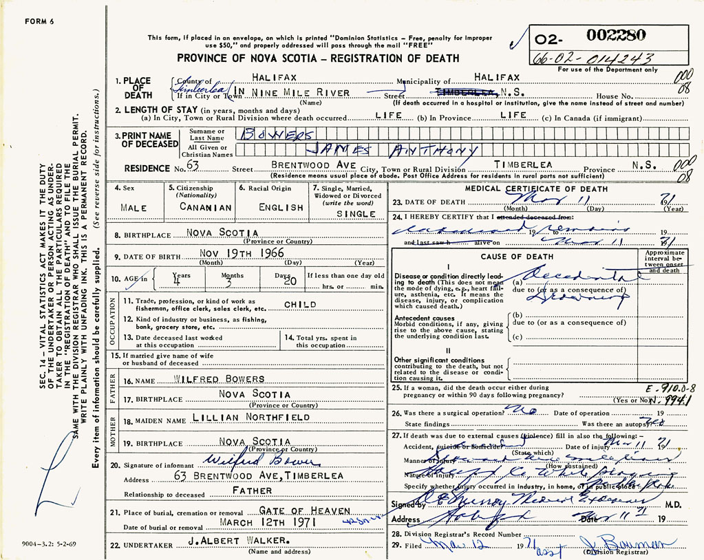 PROVINCE OF NOVA SCOTIA — REGISTRATION OF DEATH