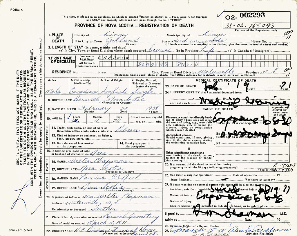 PROVINCE OF NOVA SCOTIA — REGISTRATION OF DEATH