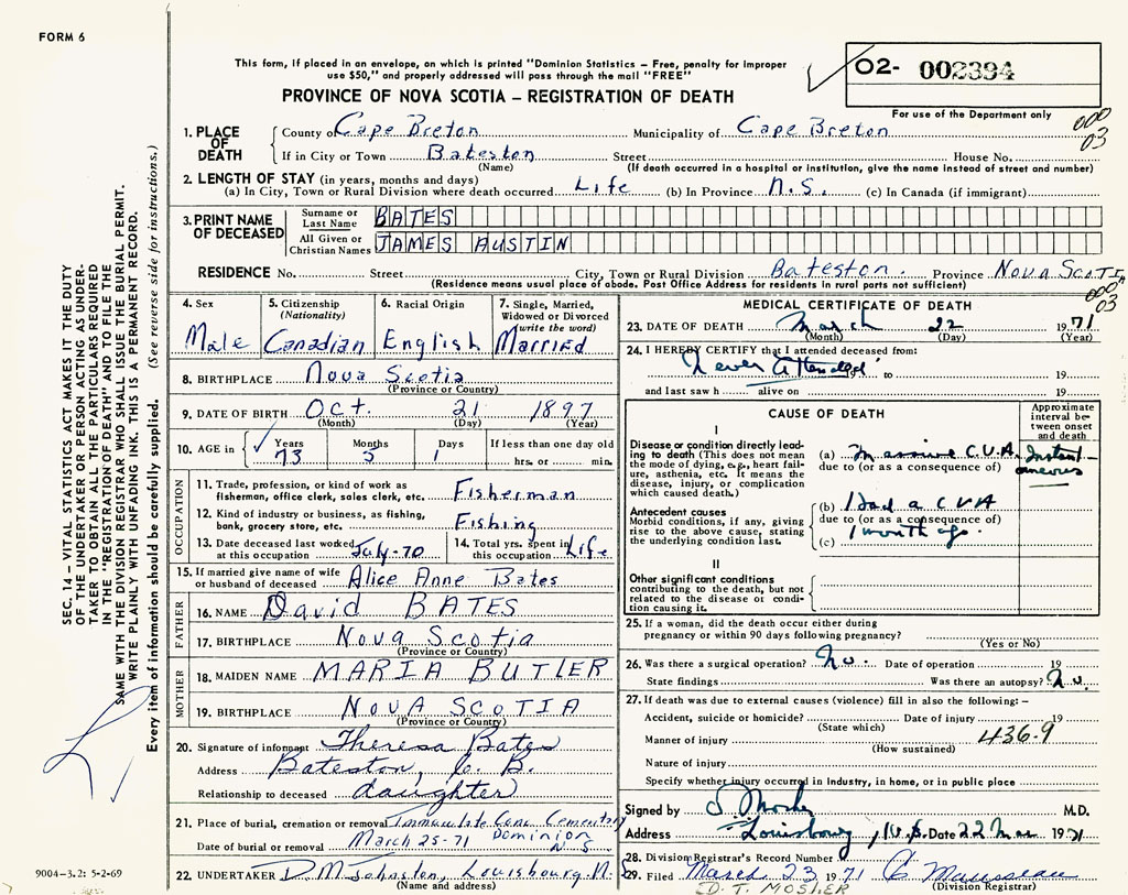 22. Undertaker DM Johnson, Louisbourg, NS