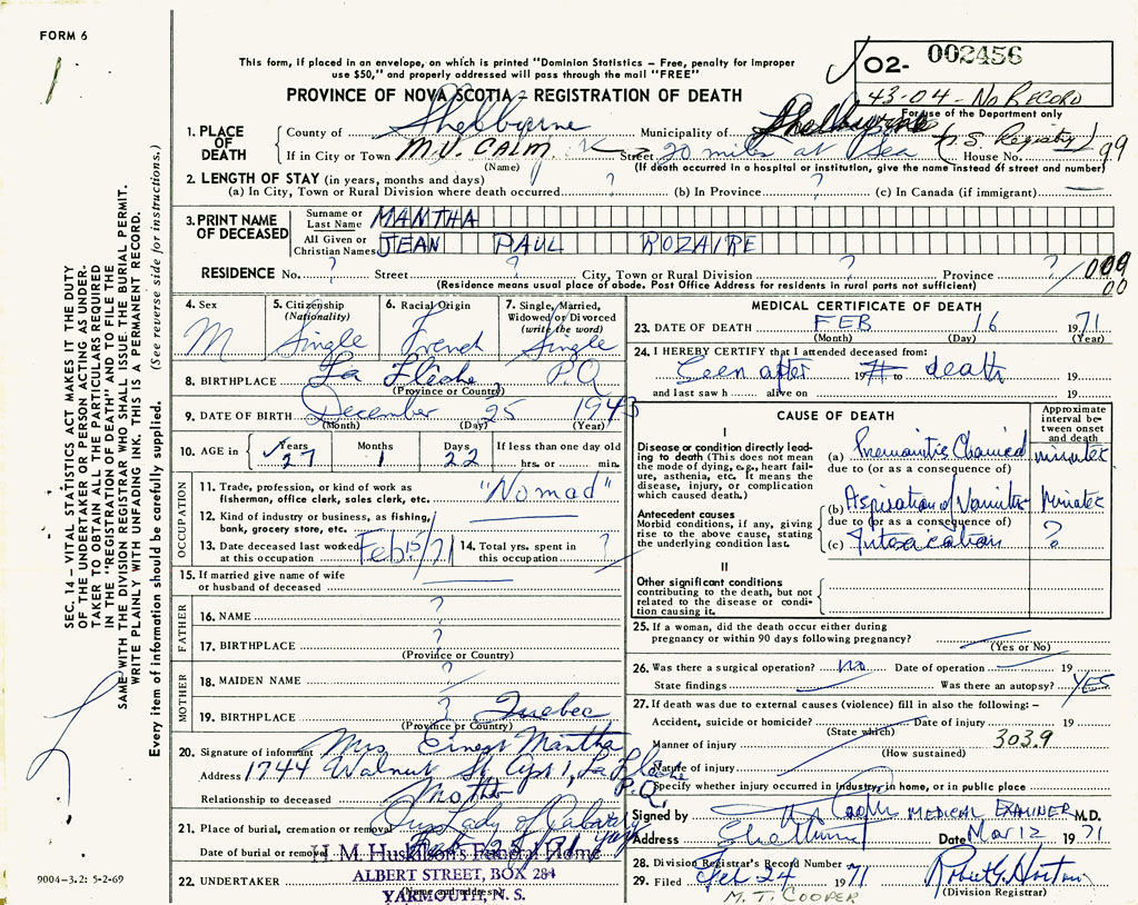 PROVINCE OF NOVA SCOTIA — REGISTRATION OF DEATH
