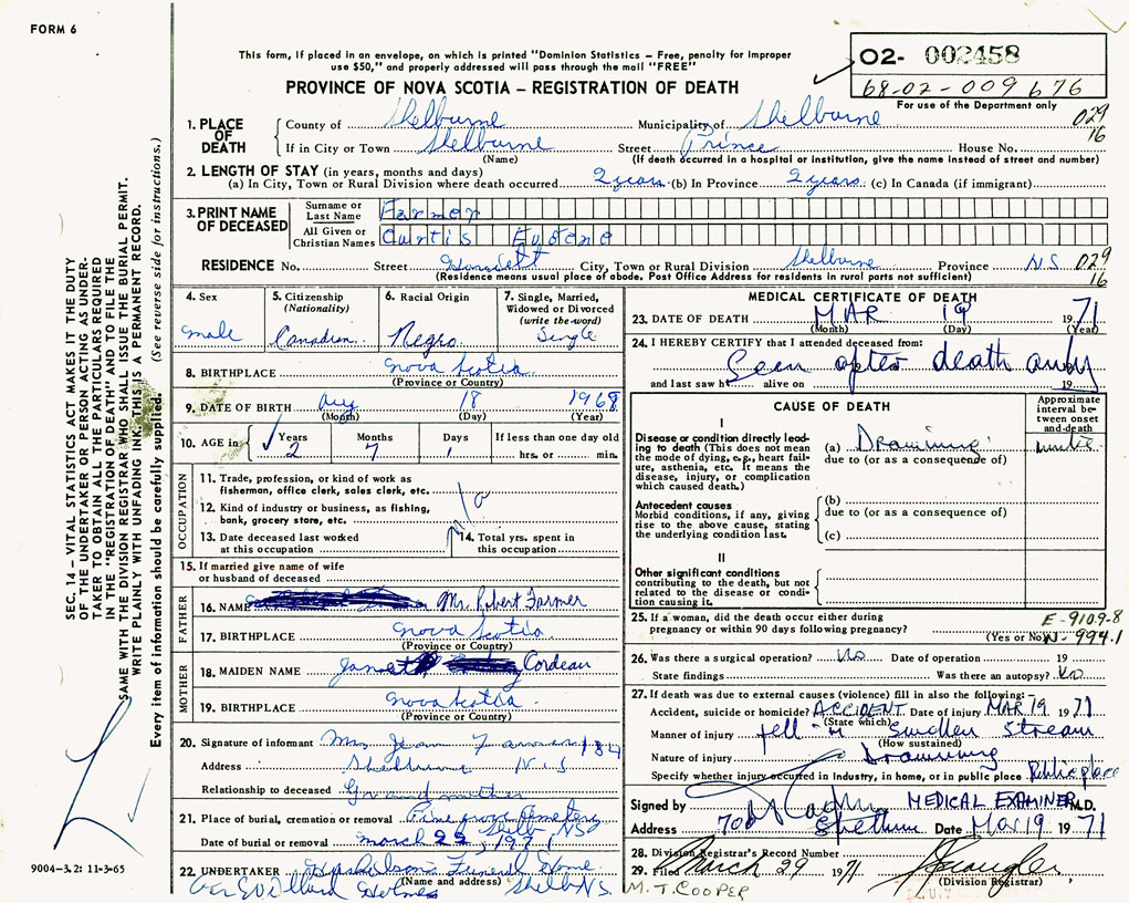 PROVINCE OF NOVA SCOTIA — REGISTRATION OF DEATH