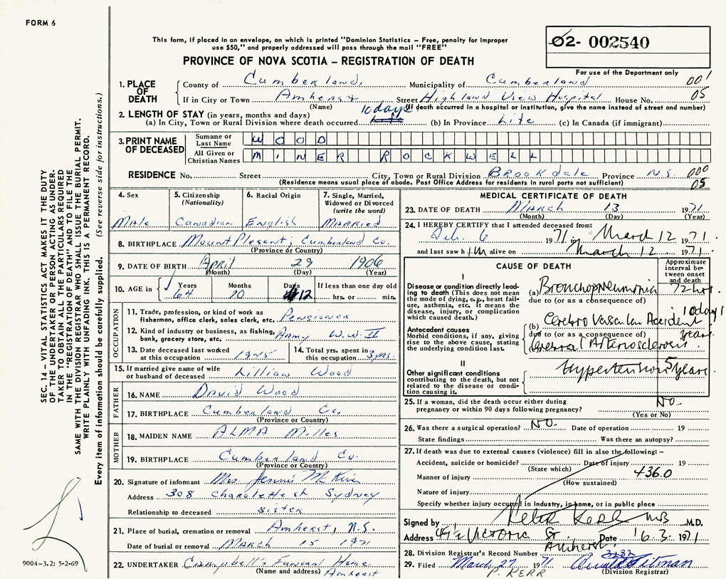 PROVINCE OF NOVA SCOTIA — REGISTRATION OF DEATH