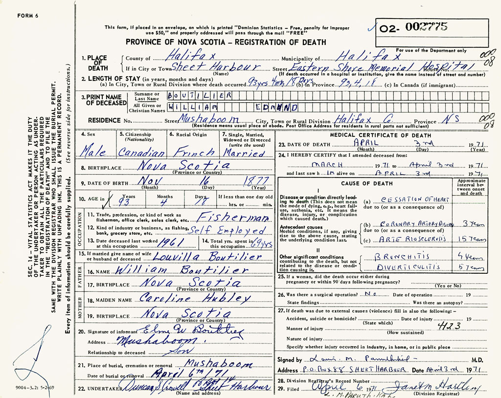 22. Undertaker Duncan S Crowell, Sheet Harbour