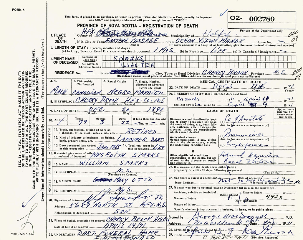 8. BIRTHPLACE Cherry Brook, Hfx. County N.S