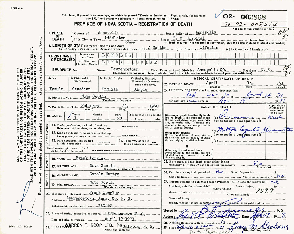 3. PRINT NAME OF DECEASED Longley, Linda Louise