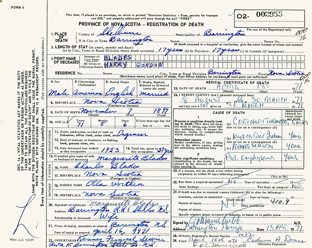 3. PRINT NAME OF DECEASED Blades, Harry Gordon
