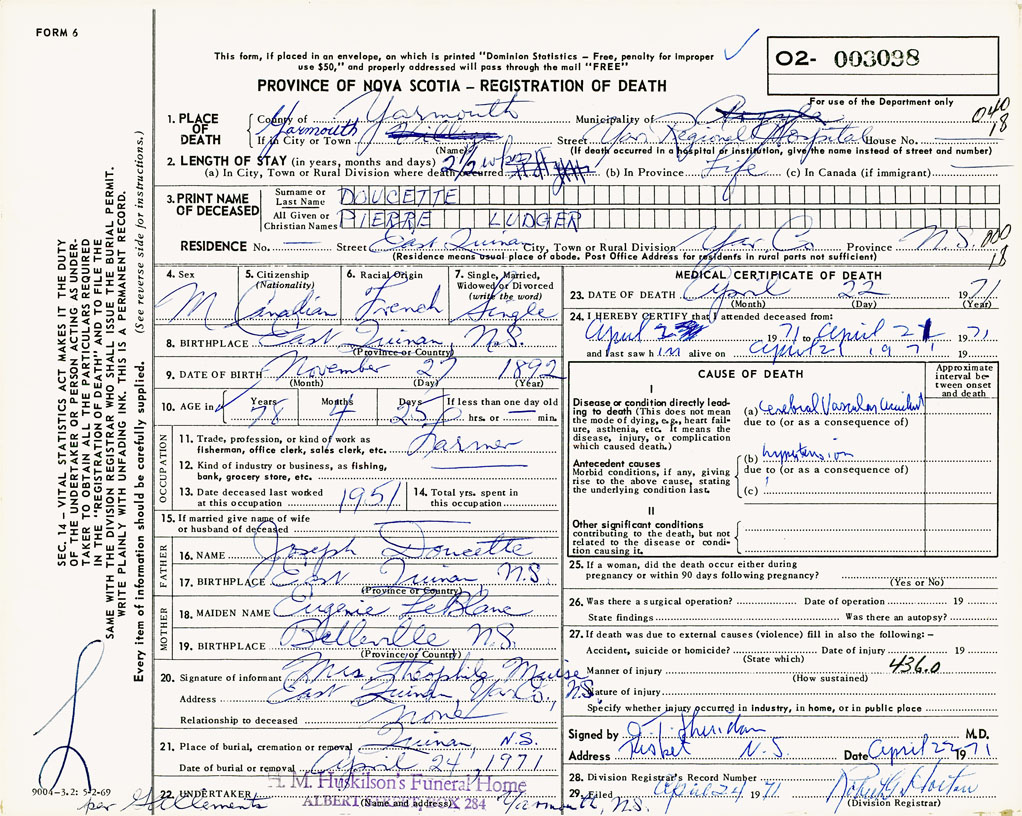 3. PRINT NAME OF DECEASED Doucette, Pierre Ludger
