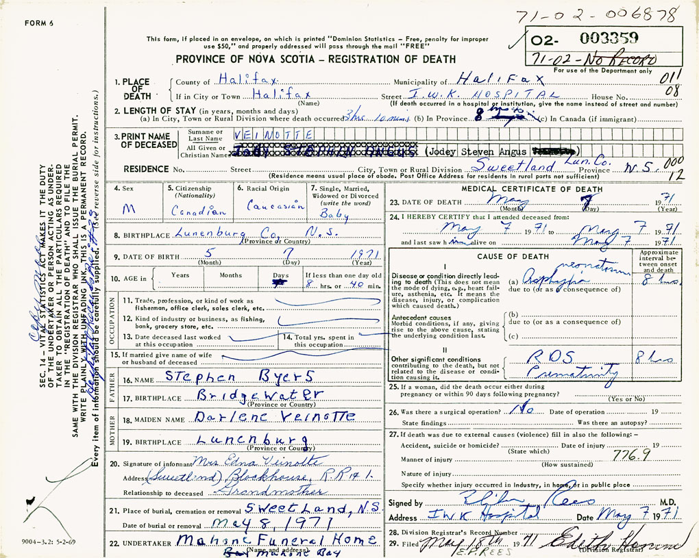 3. PRINT NAME OF DECEASED Veinotte, Jodey Steven Angus