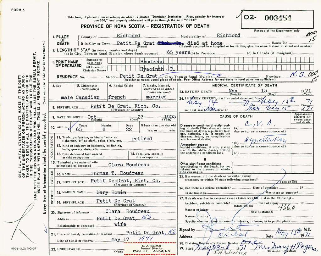 17. BIRTHPLACE Petit De Grat, Rich. Co.