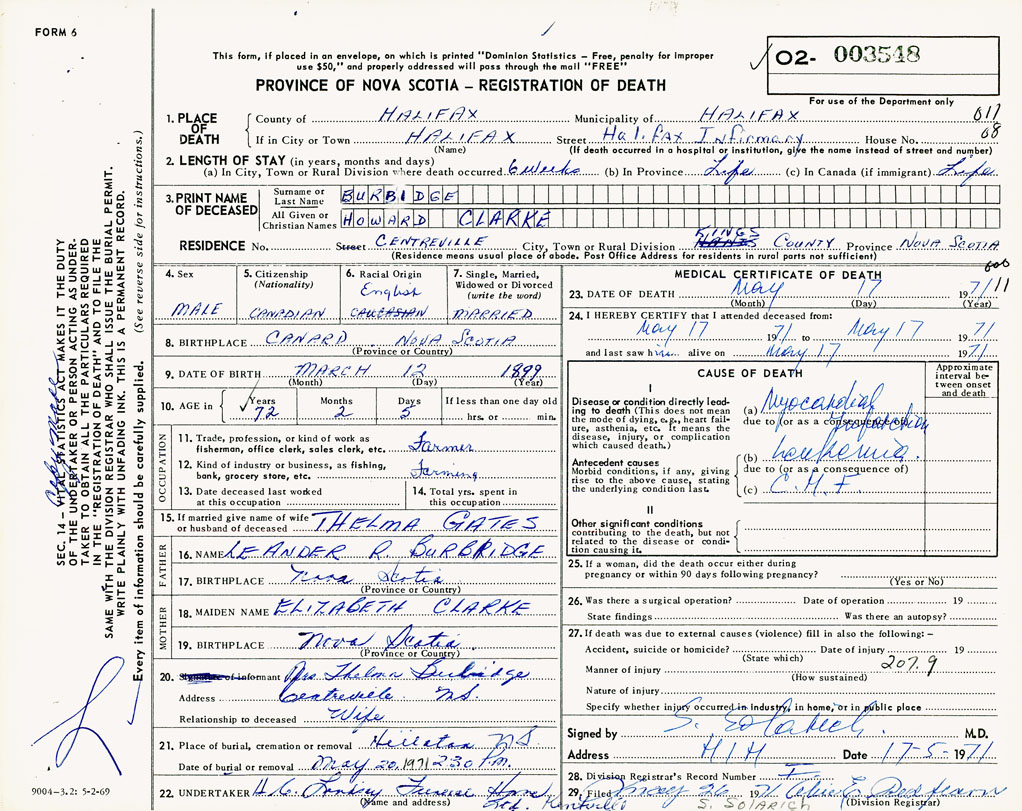 PROVINCE OF NOVA SCOTIA — REGISTRATION OF DEATH