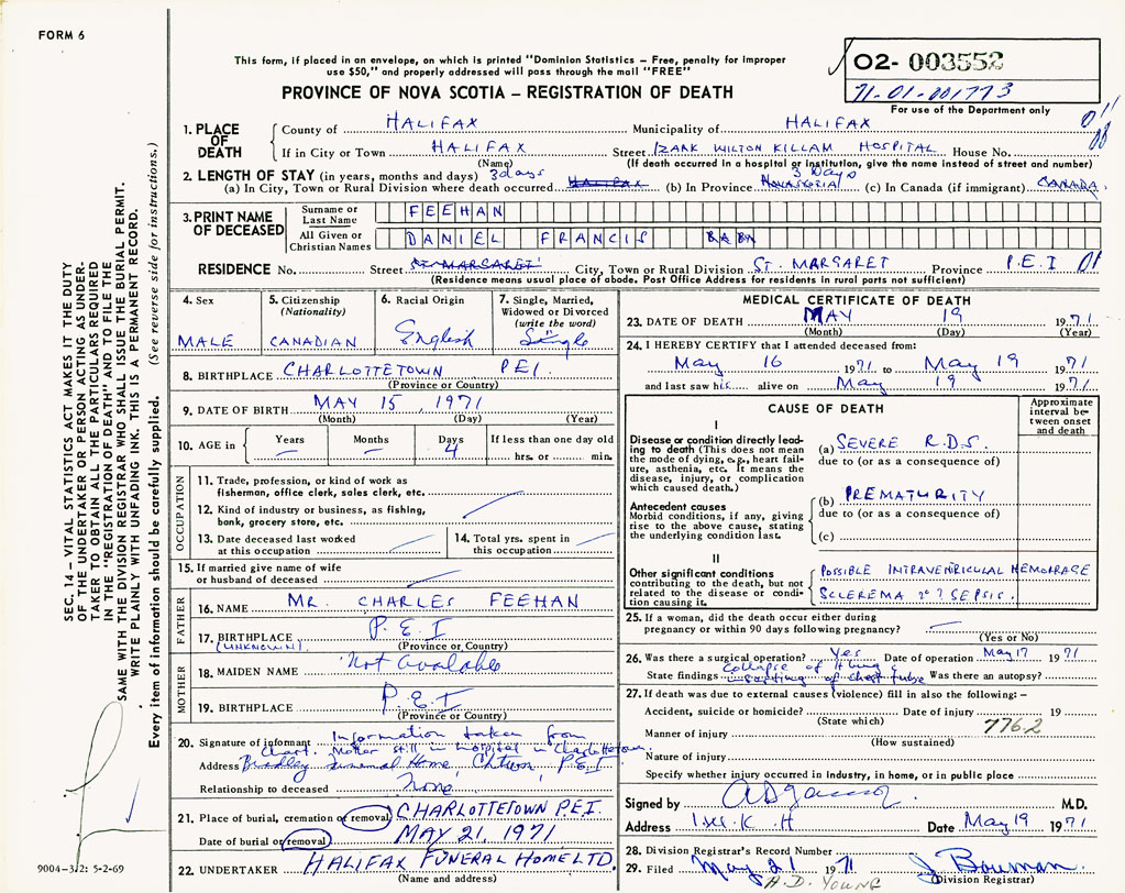 PROVINCE OF NOVA SCOTIA — REGISTRATION OF DEATH