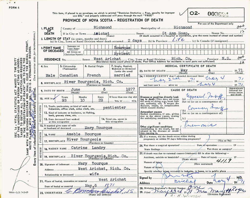 1. PLACE OF DEATH County of Richmond If in City or Town Arichat