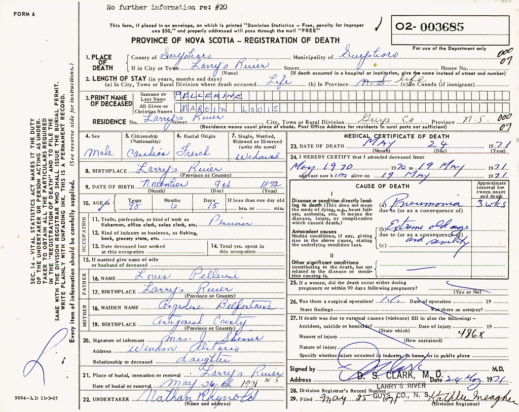 1. PLACE OF DEATH County of Guysborough If in City or Town Larrys River