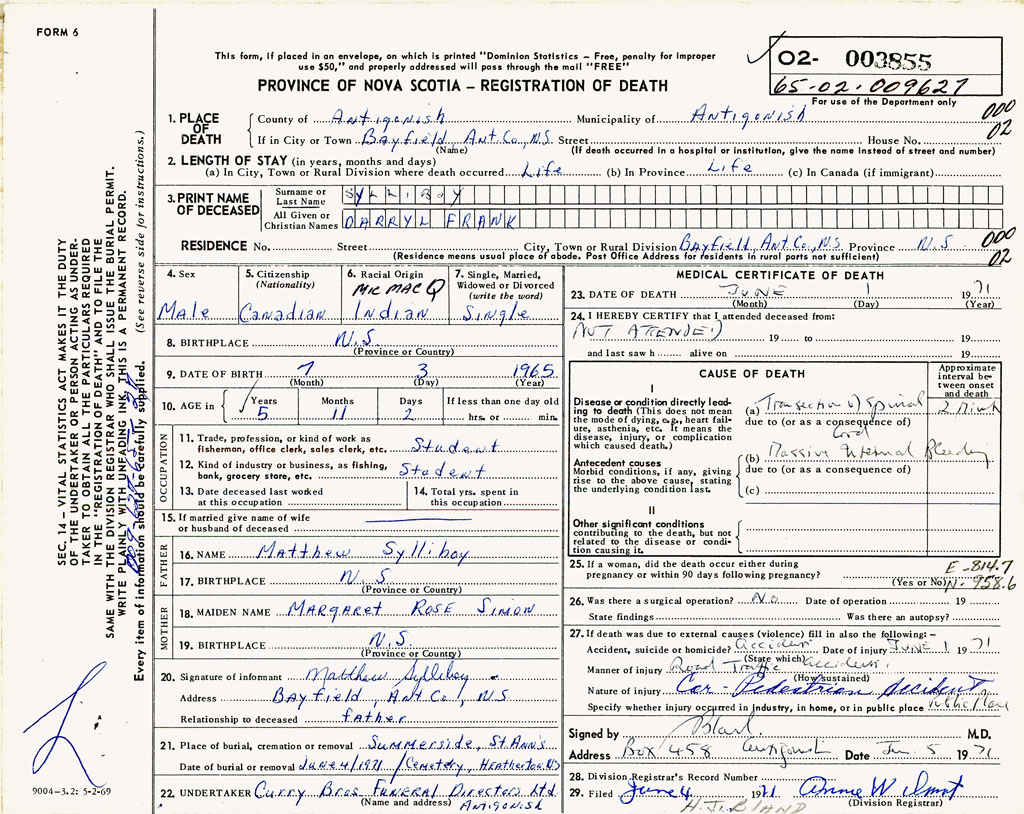 3. PRINT NAME OF DECEASED Sylliboy, Darryl Frank