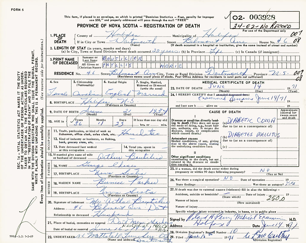 3. PRINT NAME OF DECEASED Boutilier, Phyllis Marie