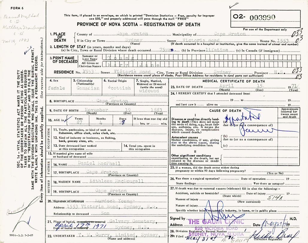 Nova Scotia Archives — https://archives.novascotia.ca/vital-statistics/death/?ID=496066