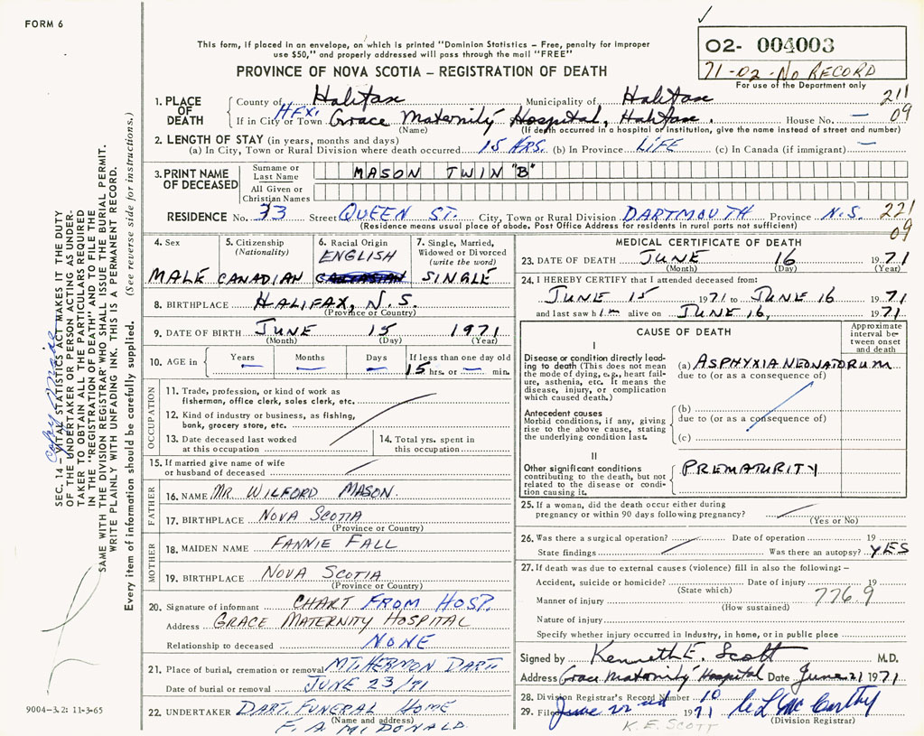 3. PRINT NAME OF DECEASED Mason, Twin B