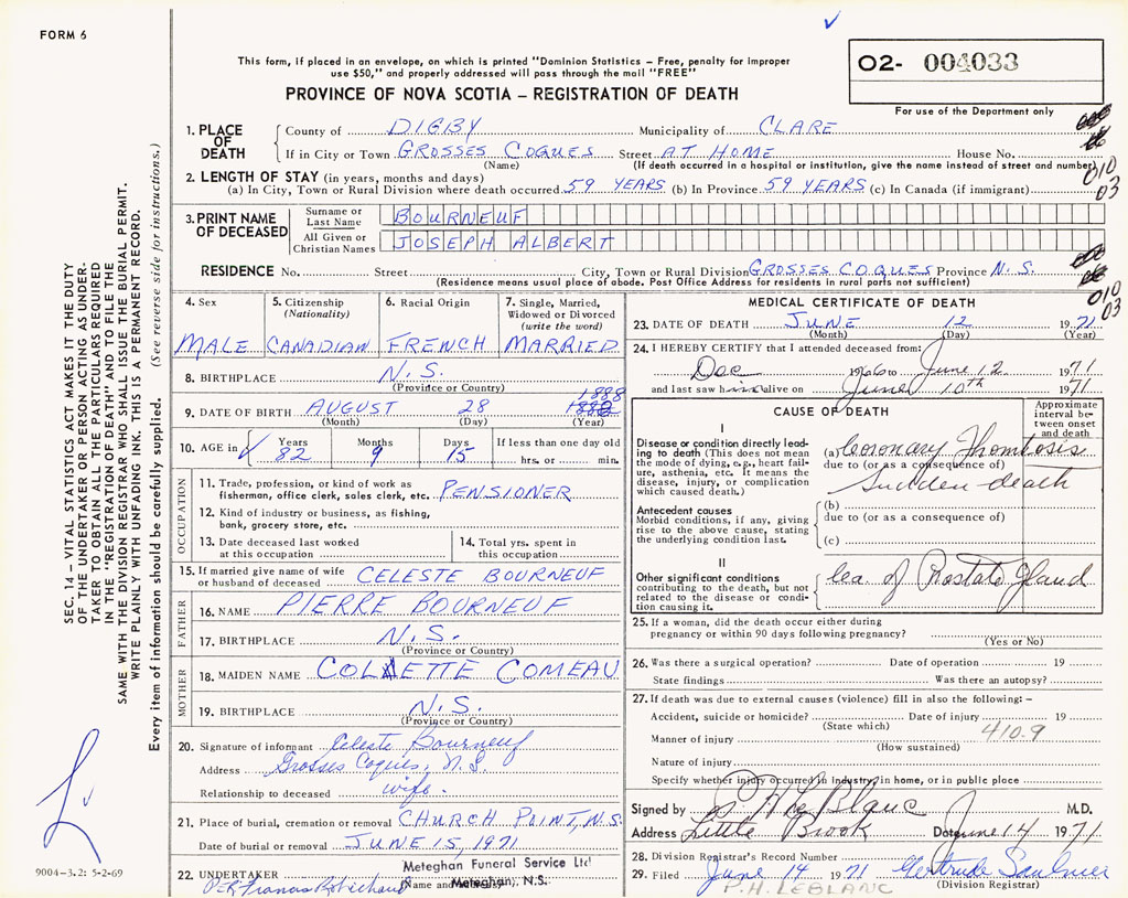 22. Undertaker Meteghan Funeral Serive Ltd., Meteghan, NS