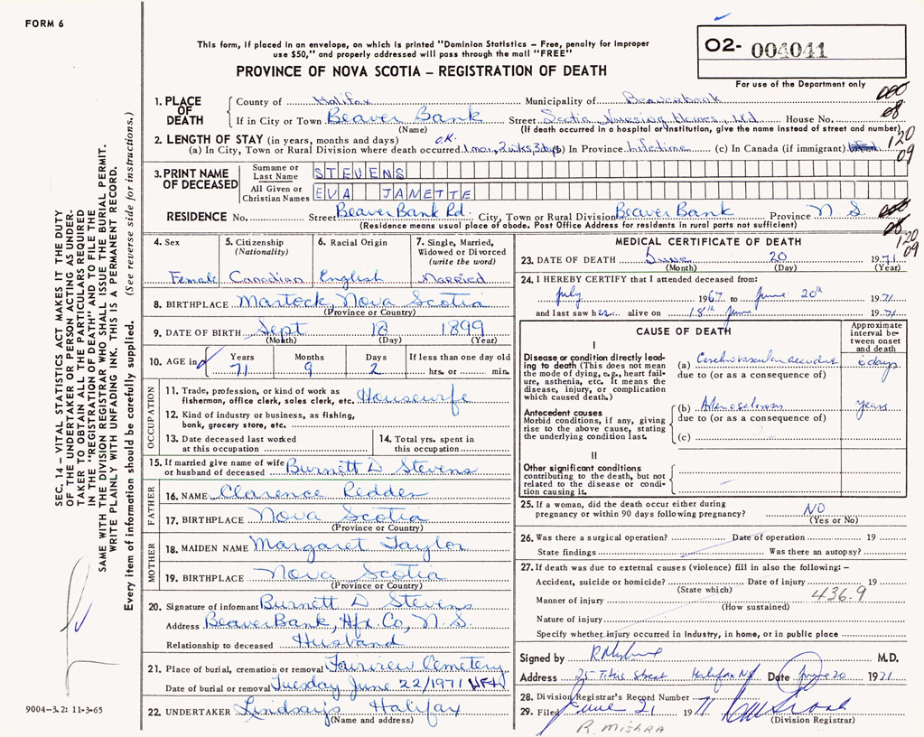 Nova Scotia Archives — https://archives.novascotia.ca/vital-statistics/death/?ID=496116